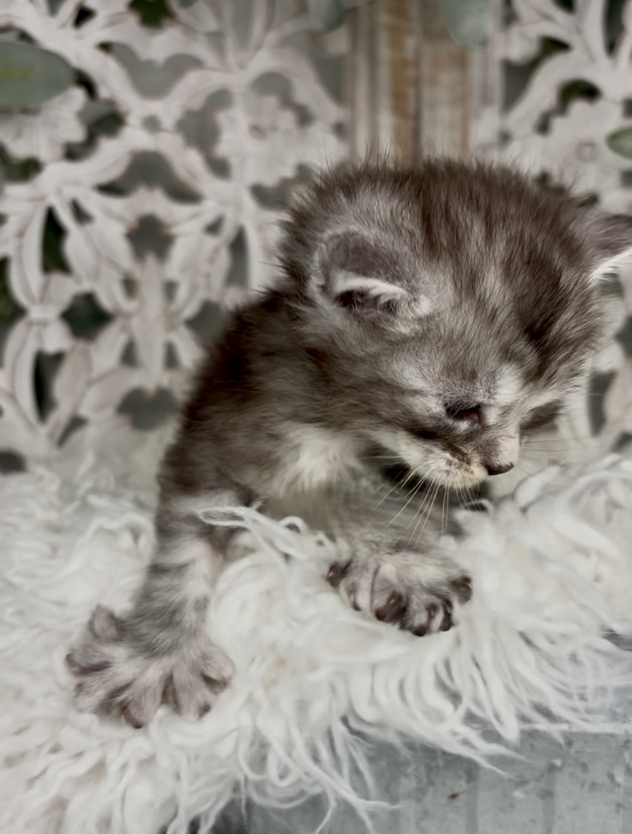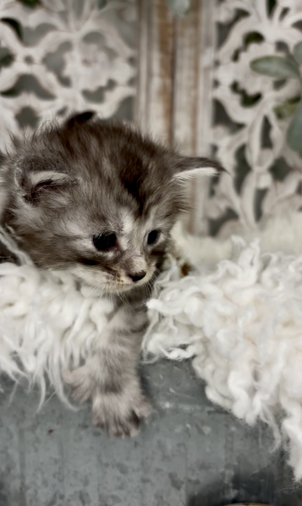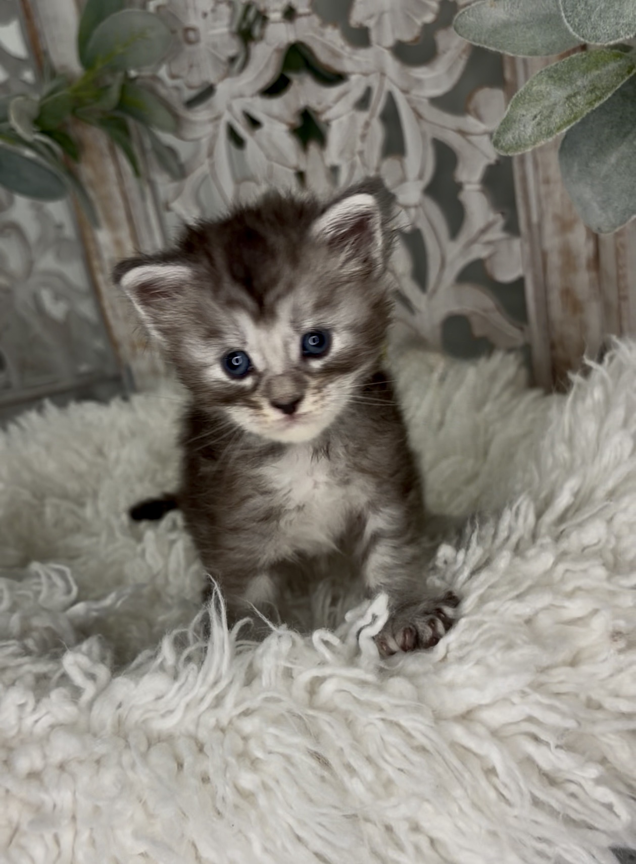 A black silver tabby polydactyl male with undeniable star power—bold, fearless, and built to break limits. There’s been early speculation about possible blue or odd eyes, but current intel suggests standard coloring. As always, final eye color remains unconfirmed. Eye color is not guaranteed.