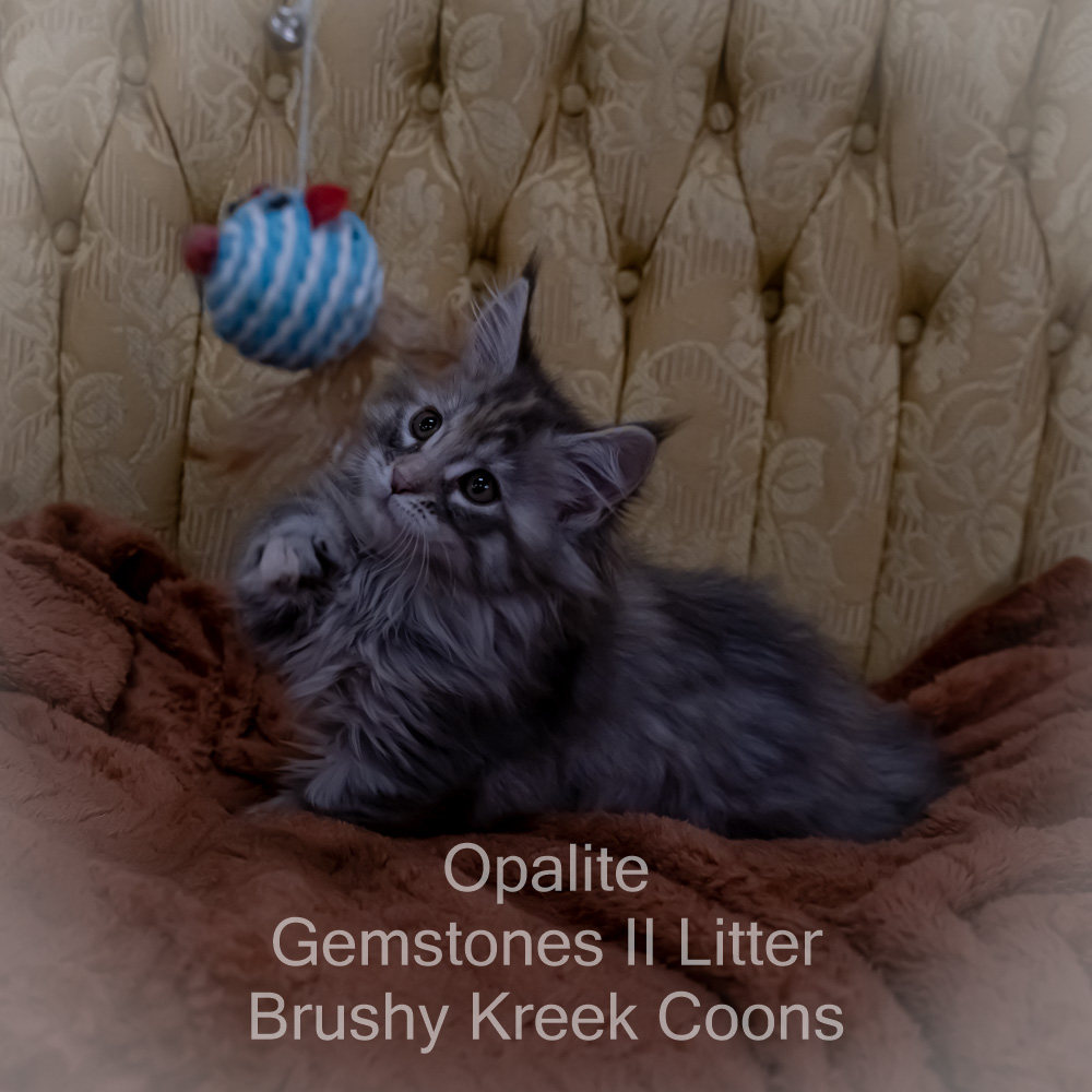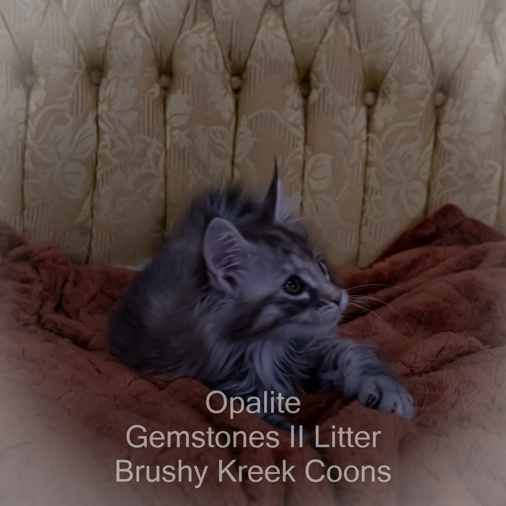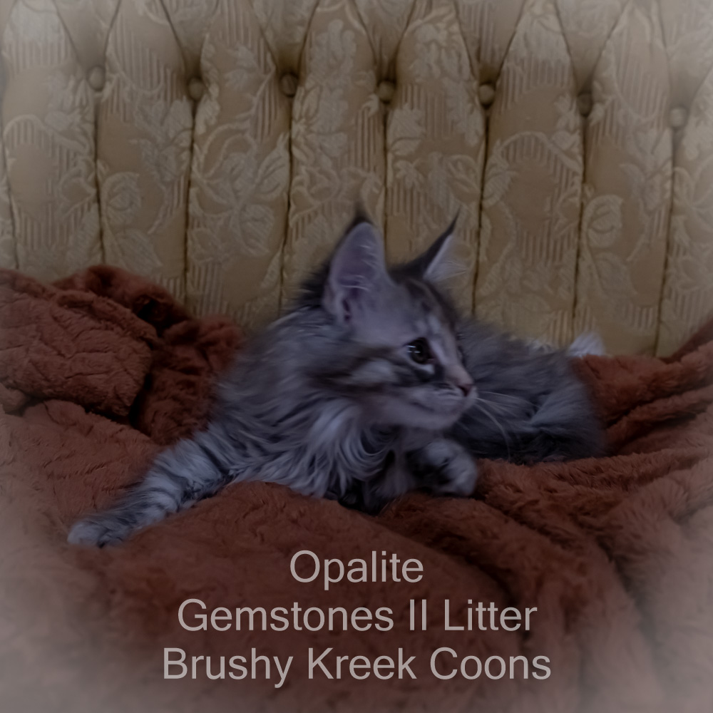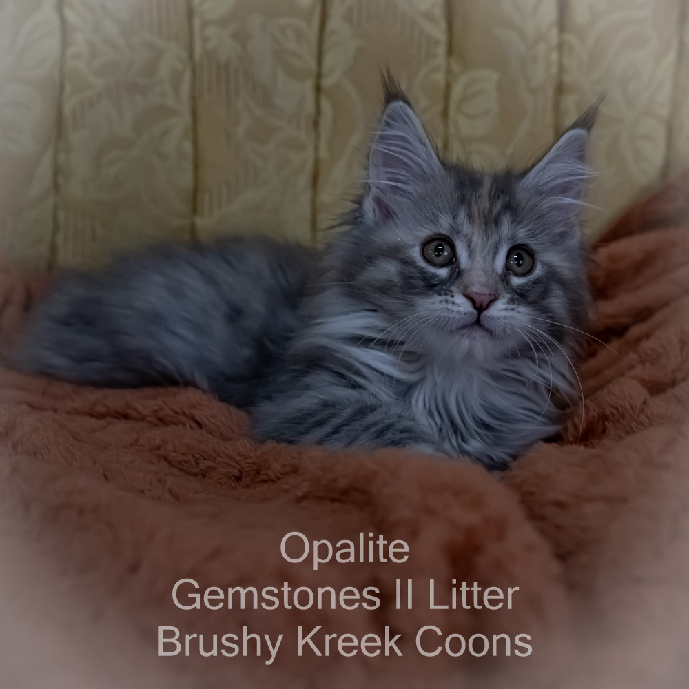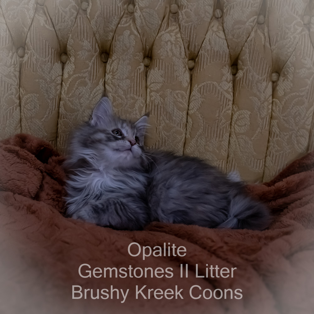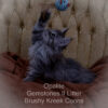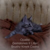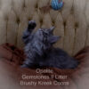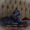 Opalite is a blue silver torbie girl. Her date of birth is 01/03/26. The parents are Gelhorn and Odin. He is available to go home 03/27/26 thru 03/31/26.
