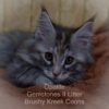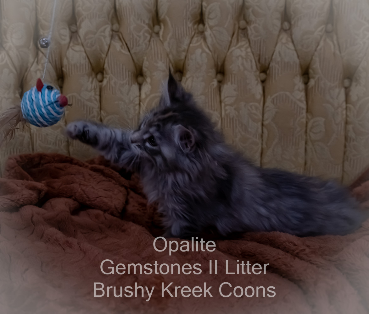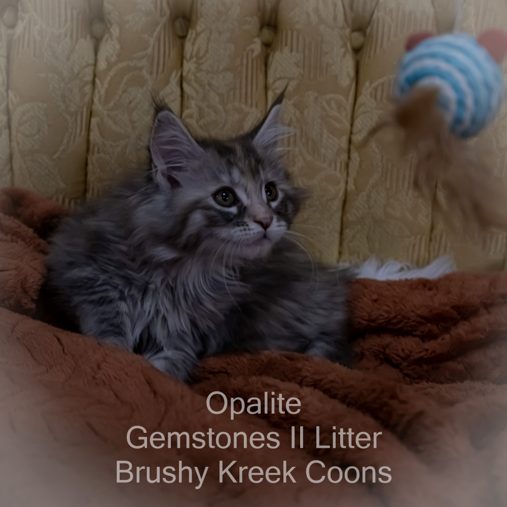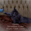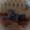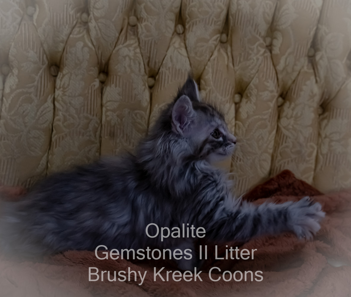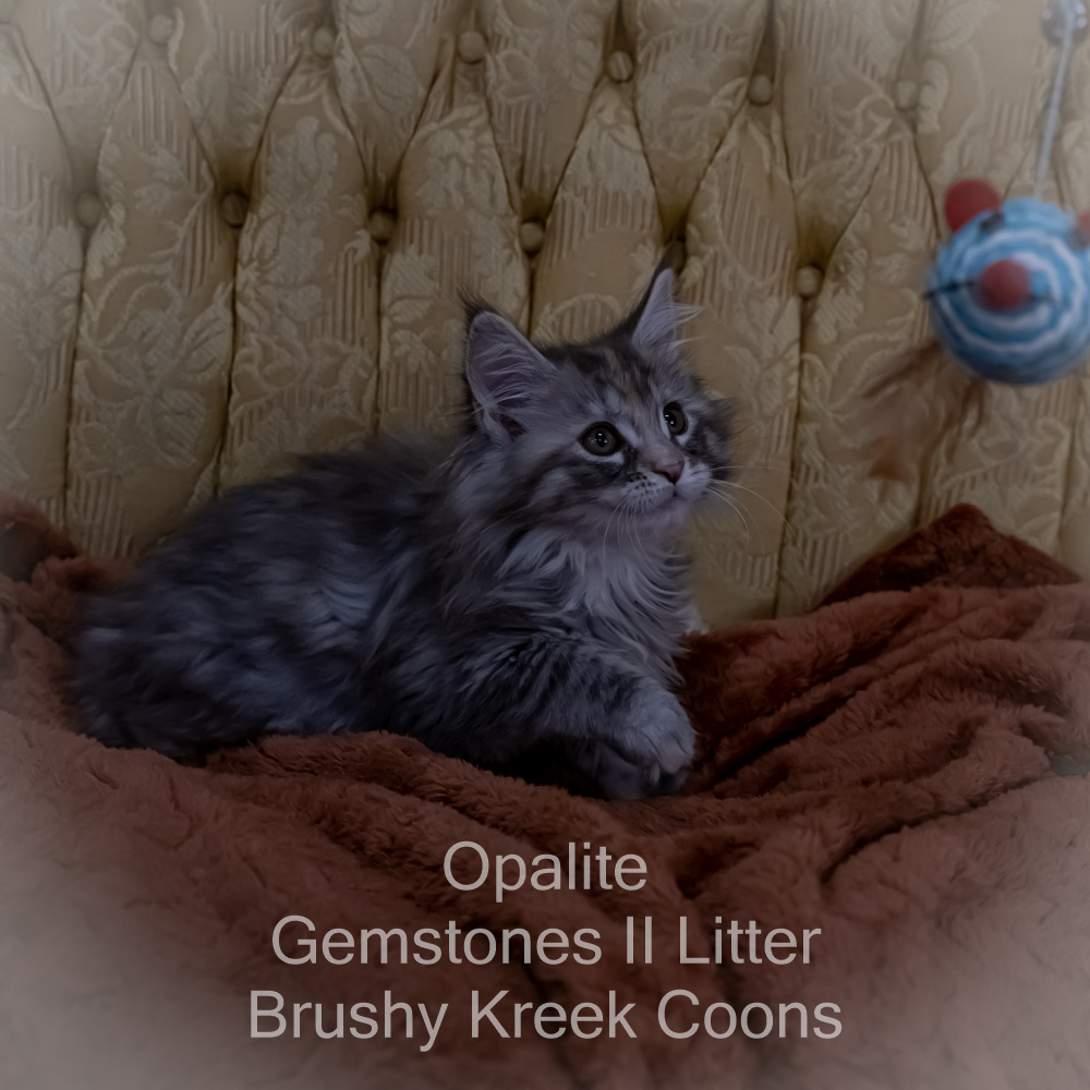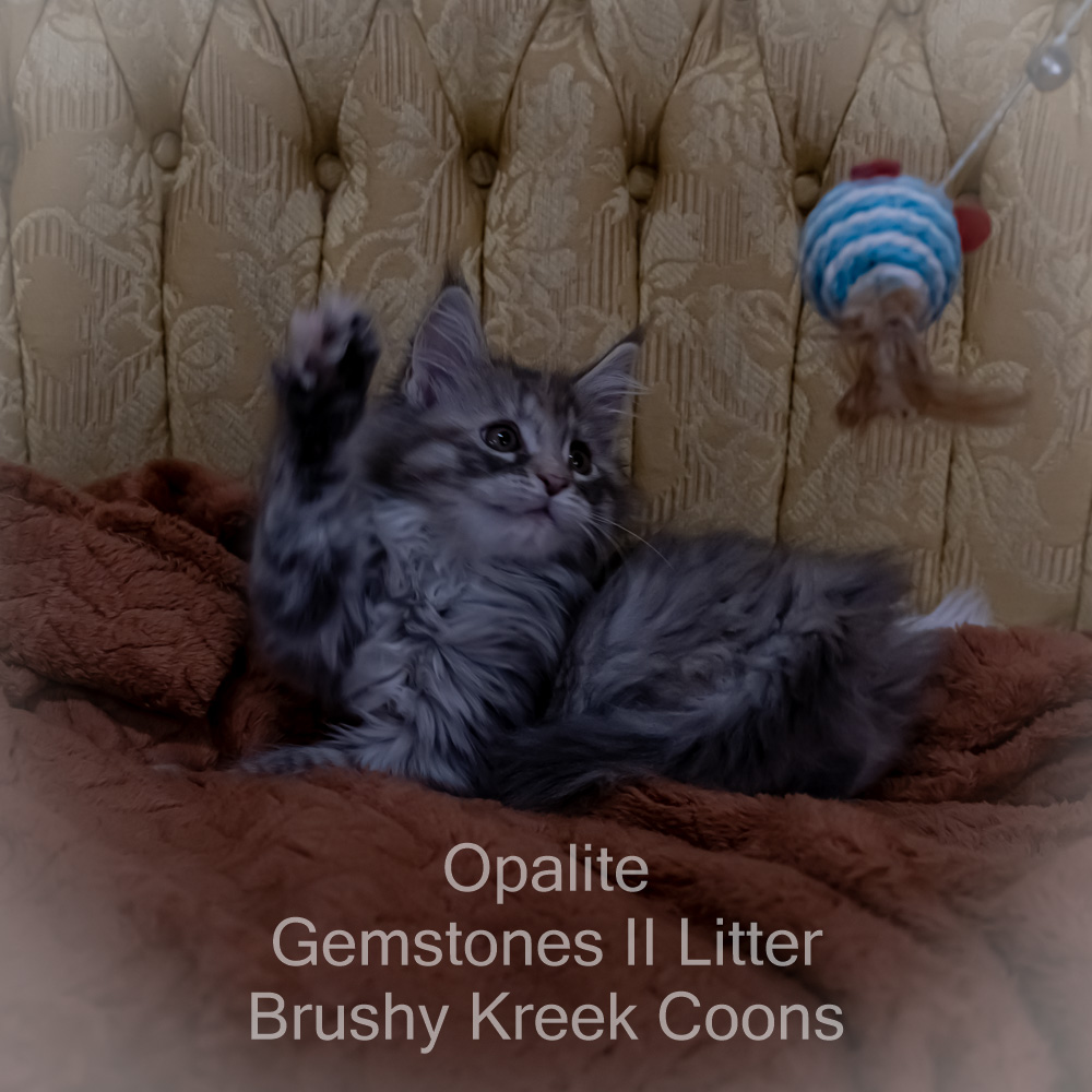 Opalite is a blue silver torbie girl. Her date of birth is 01/03/26. The parents are Gelhorn and Odin. He is available to go home 03/27/26 thru 03/31/26.